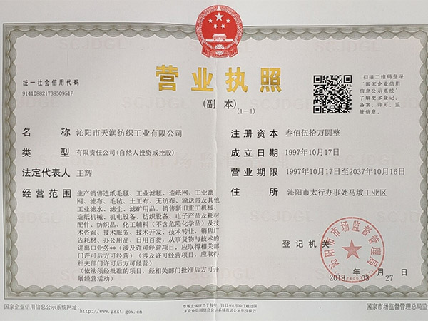 Puyang Tianrun Textile Industry Co., Ltd. is a professional manufacturer of industrial use (commonly known as: blanket) required by the world's paper industry. It is located in the first province of Huaiqing, Henan Province, and the city of Fuyang. The company has strong technology, adva......